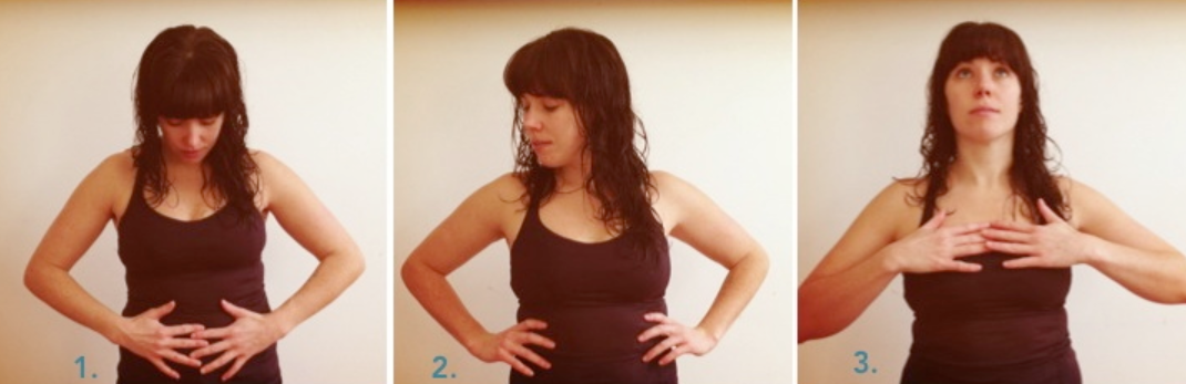 Also knows as Dirga Pranayam, is the foundation of all the yogic breathing techniques. It helps dispel anxiety and create a sense of calm(via nagal nerve). The purpose this three-part breath is to unlearn patterns of taking in slow sips of breathe(shallow breathing!) and mouth breathing, which can create tension in your body and anxiety in your mind. A typical visual is to thnk of filling your lungs up like a glass of water from the bottom up (even though the air goes into your bronchial tree from top down).