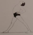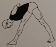 From Standing, step your left foot back, about 3 ft. Turn back foot out 45°. Bring left hip forward and rotate your torso square to the front of the mat. Firm and press yout tighs towards each other as if squeezing a block. Lengthen your tailbone down. Press right thighbone back. Hinge at the hips and lean the torso forward over the right thigh. Place hands on chair, block, ground, or behind back. Feel stretch in the harmstring and spine. |
